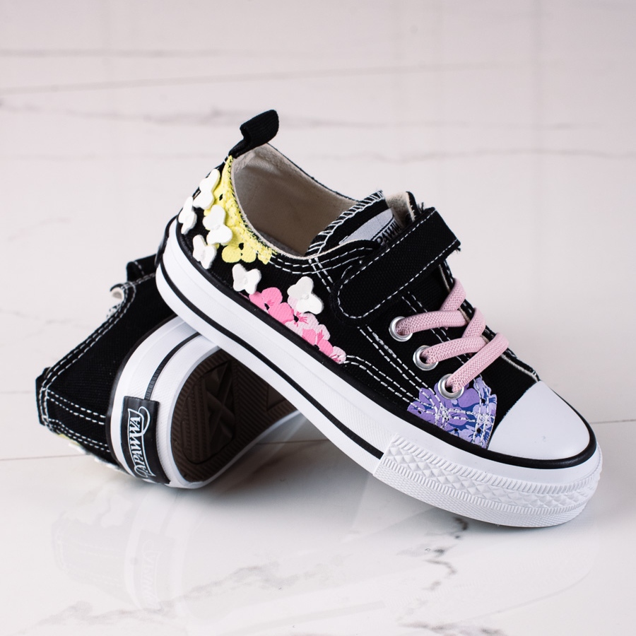 SHELOVET Shelovet low children's sneakers black with flowers multicolored