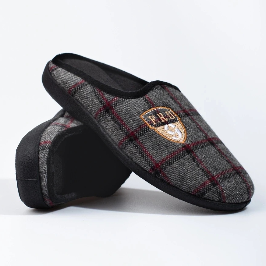 - Model: Men's gray checkered slippers
