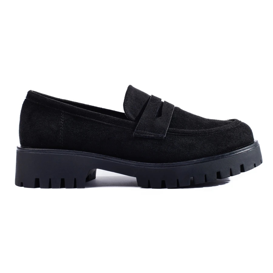 SHELOVET Shelovet suede moccasins with a thick sole black