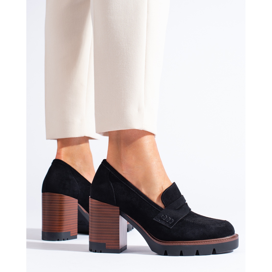 Suede black women's high-heeled shoes by Shelovet are the quintessence of elegance, perfect for every woman who values comfort and style. These classic and modern shoes were created for dynamic and self-confident women who seek a combination of functionality and fashionable design in everyday life.