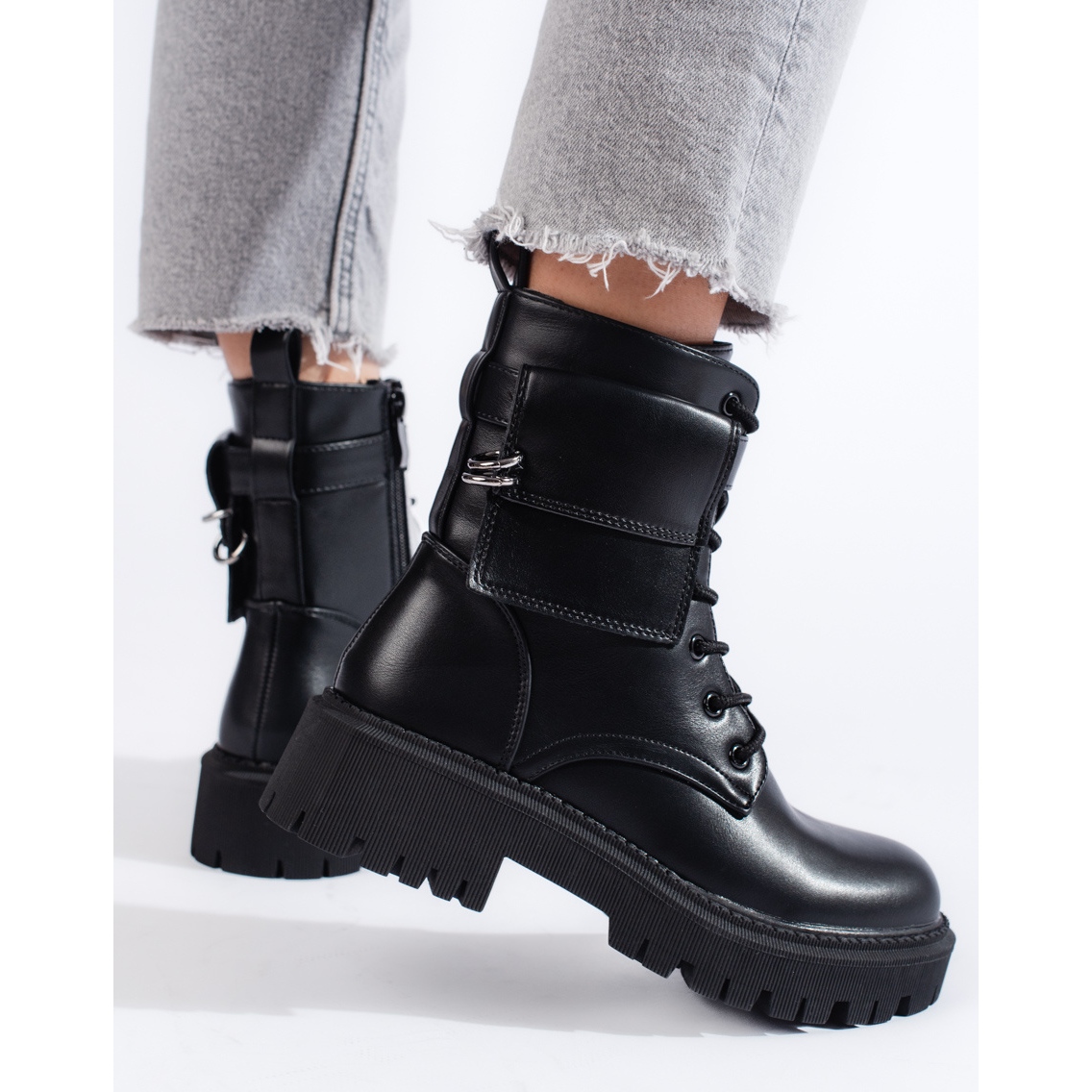 Classic, black Workers from Shelovet are a combination of rock character with everyday comfort. Made of ecological leather, insulated and designed to ensure comfort at every urban stylization - from jeans to dresses with thick tights.