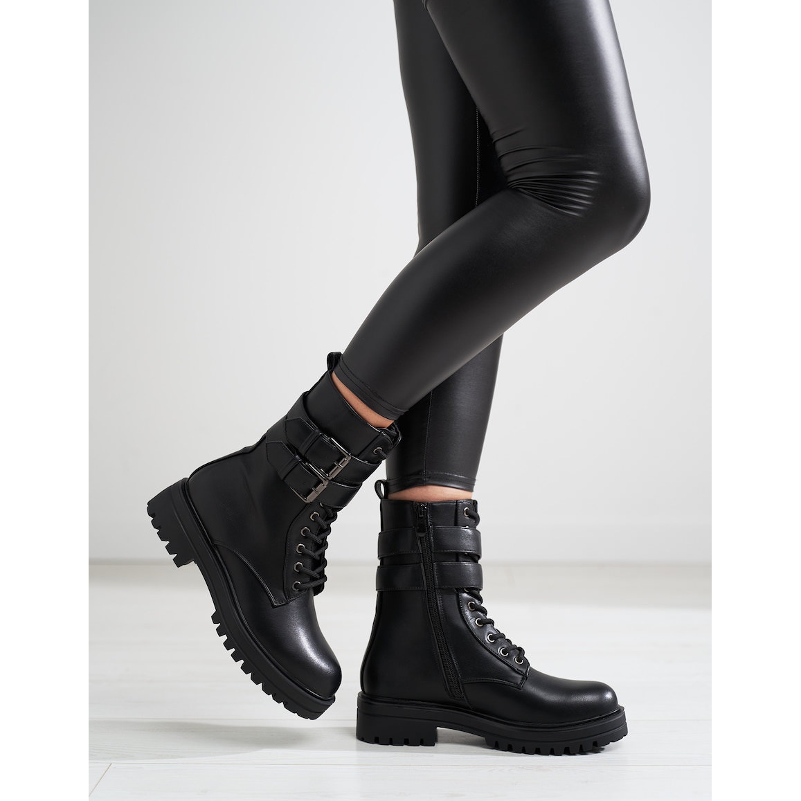 With a 4 cm high synthetic treaded sole and a 2.5 cm platform, these work boots are both practical and fashionable. The round toe adds a touch of subtlety, while the lacing and buckles ensure a comfortable fit and make them easy to put on and take off.