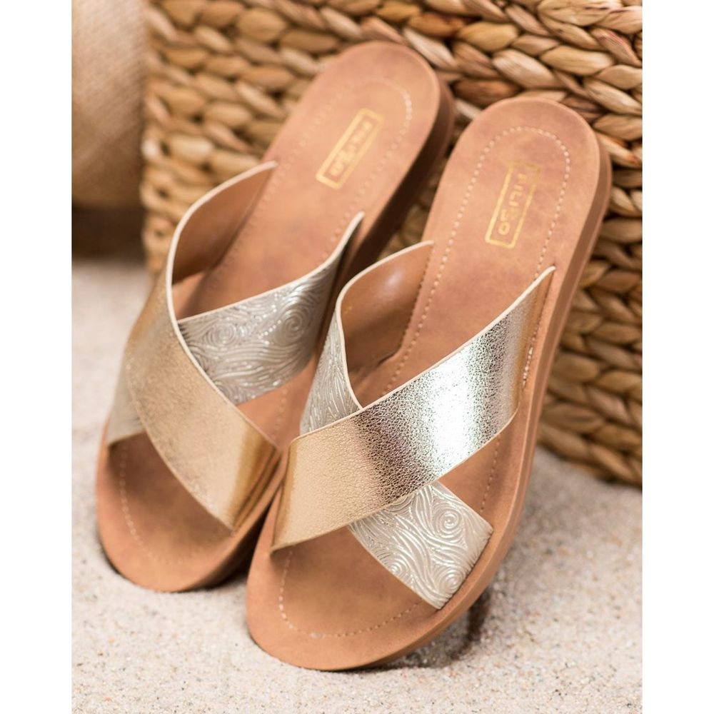 Discover a completely new dimension of comfort and style with shiny faux leather flip-flops from Filippo! These incredibly elegant flip-flops in a beautiful gold color are the perfect choice for every woman who wants to add a bit of shine to her everyday styling.