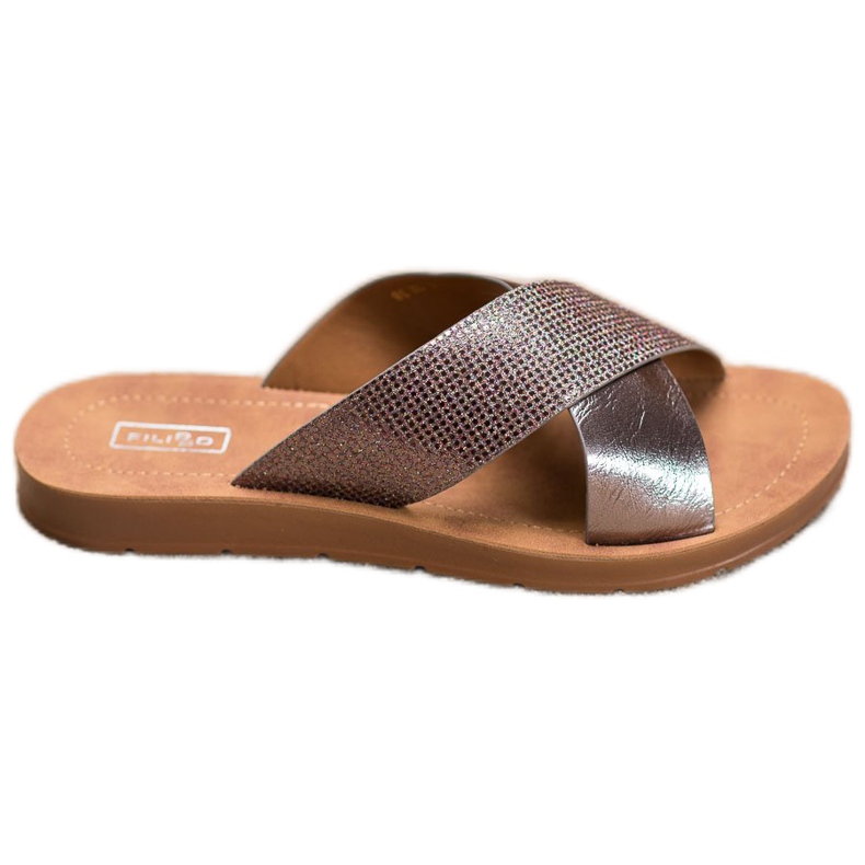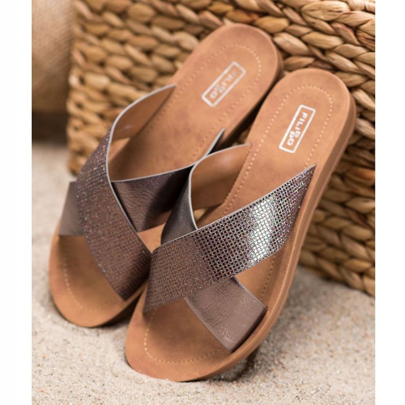 Discover comfort and fashionable style with Filippo Shiny Flip-Flops in an elegant grey color! These unique women's flip-flops, made of 100% eco-leather, are a great choice for spring and summer days.