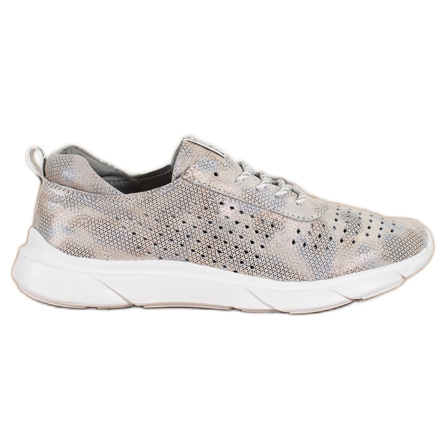Details: Goodin Shiny Leather Sneakers beige grey golden