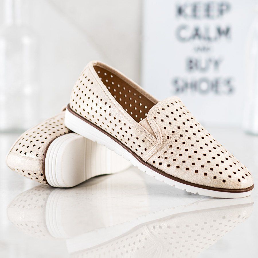 Introducing the gold openwork slip-ons from Kylie, which are the perfect choice for spring and summer. These stylish half-shoes are sure to catch the eye of every fashion lover. Their unique, shiny gold color complements any casual style, making them a real must-have this season.