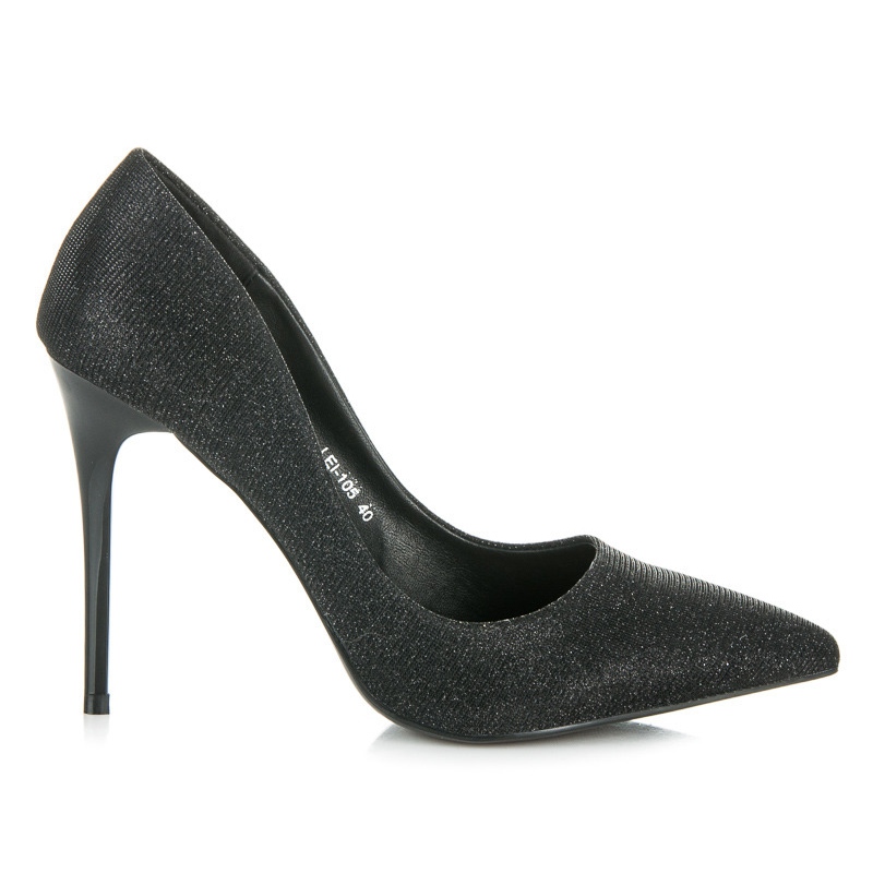 Qinba pumps are the perfect choice for women who value classics in a modern version. These elegant black shoes with high heels combine a traditional style with a touch of shine, thanks to the glitter surface that attracts attention and adds a unique character. They are perfect for New Year's Eve or other parties, giving every styling an elegant and chic accent.