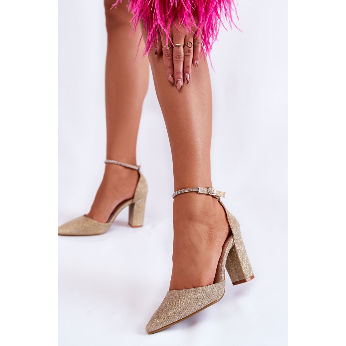 Discover elegance and style with the PS1 pumps in a dazzling gold color! These fashionable shoes with a stable block heel perfectly fit into current trends, while providing comfort and confidence in your step. Fastened around the ankle with an adjustable strap decorated with rhinestones, these pumps with a pointed toe are a great option for evening outings, a romantic dinner or an elegant party.