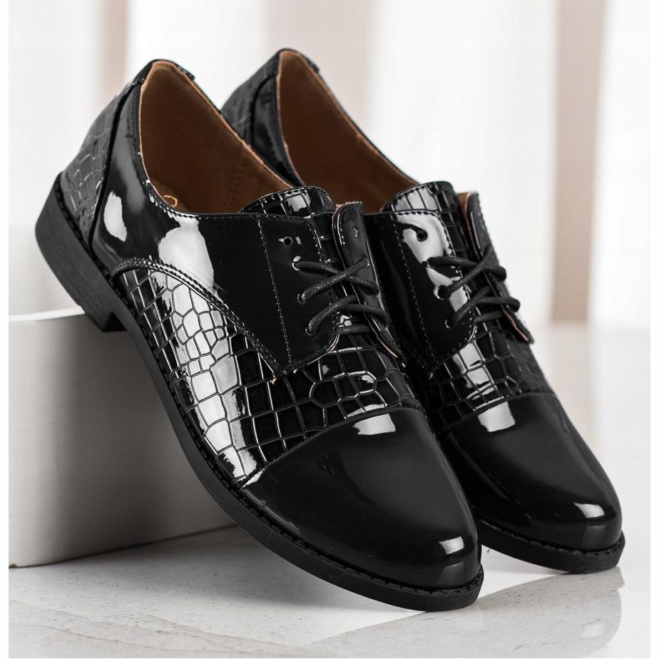 SHELOVET Shiny Snake Print Low Shoes in Black are definitely a must-have for every woman who wants to stand out in a crowd. Their unique cut and fashionable snakeskin pattern will be a perfect complement to both everyday and elegant styles. These original low shoes go great with both trousers and formal dresses or classic skirts, making them a great choice for various occasions.
