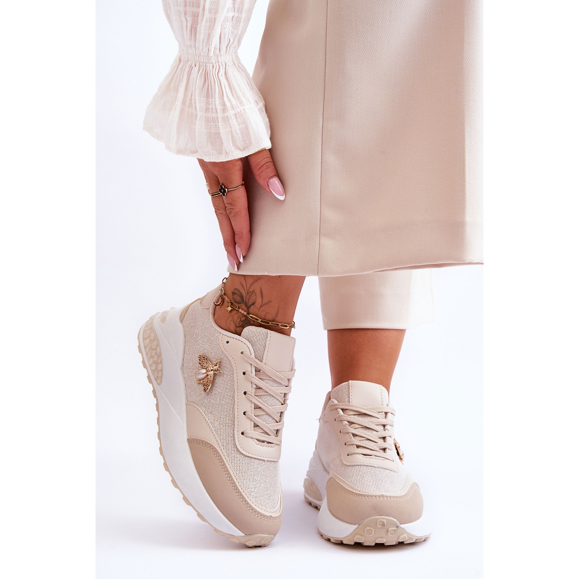 Details: PS1 Shiny Sports Shoes With Beige Seneca Decoration