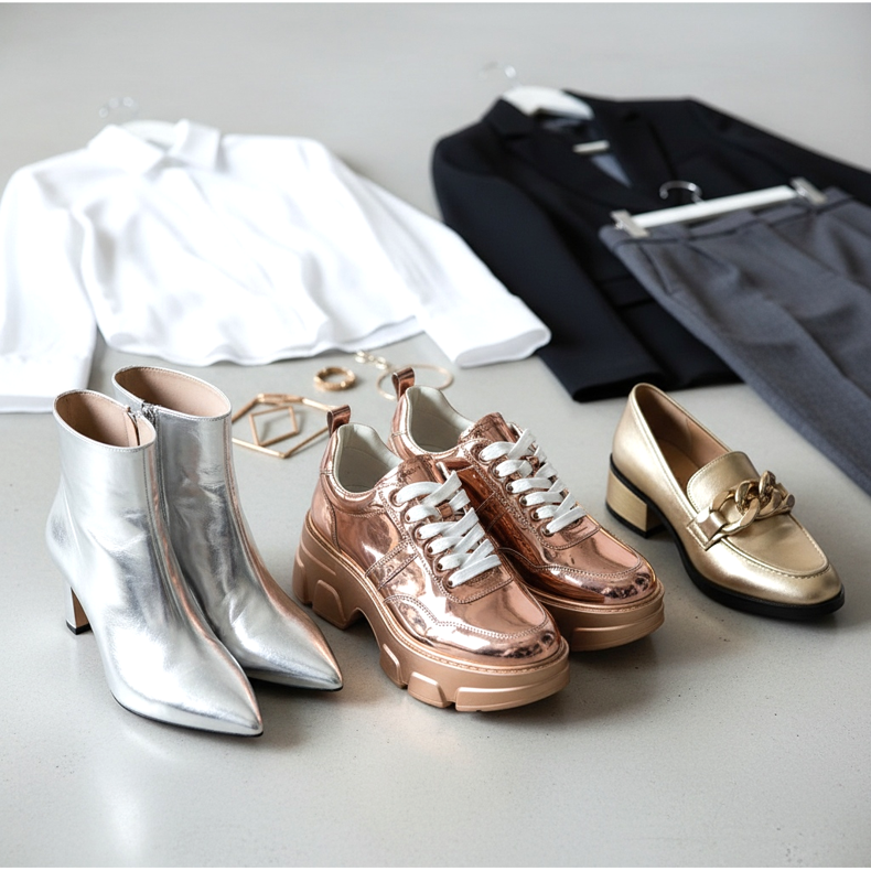If you are brave, metallic brown, silver or gold are the colors that will be a hit in spring 2026. They are popular especially in premium collections and in more creative workplaces. Wear metallic shoes with neutral outfits - black, white, gray - so that there is not too much flash at once. In the evening, metallic sneakers or boots can become a great complement to an elegant styling. During the day, metallic platform shoes or sneakers will look modern and fashionable, especially if you combine them with minimalist clothing.