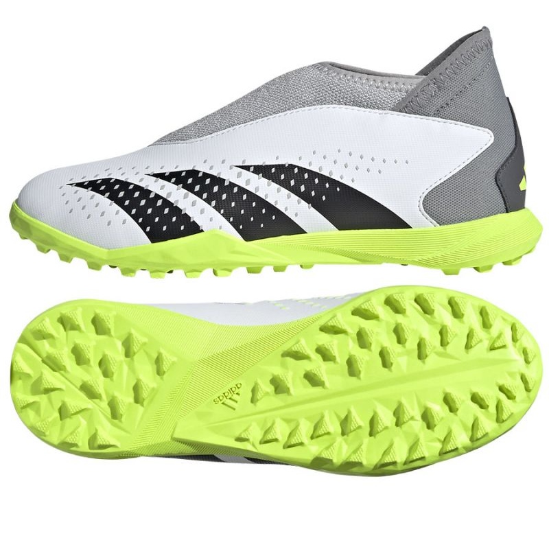 Adidas Predator Accuracy.3 LL TF Jr IE9436 white shoes are a unique proposition for young football enthusiasts. These low turfs were designed for playing on artificial surfaces, offering juniors not only comfort and safety, but also unrivaled ball control.