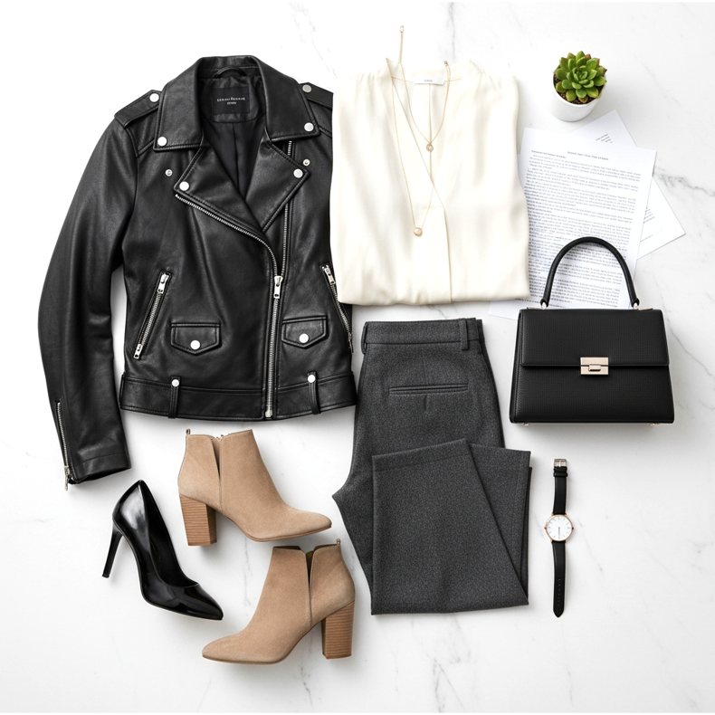 Elegant shoes with a leather jacket for the office
