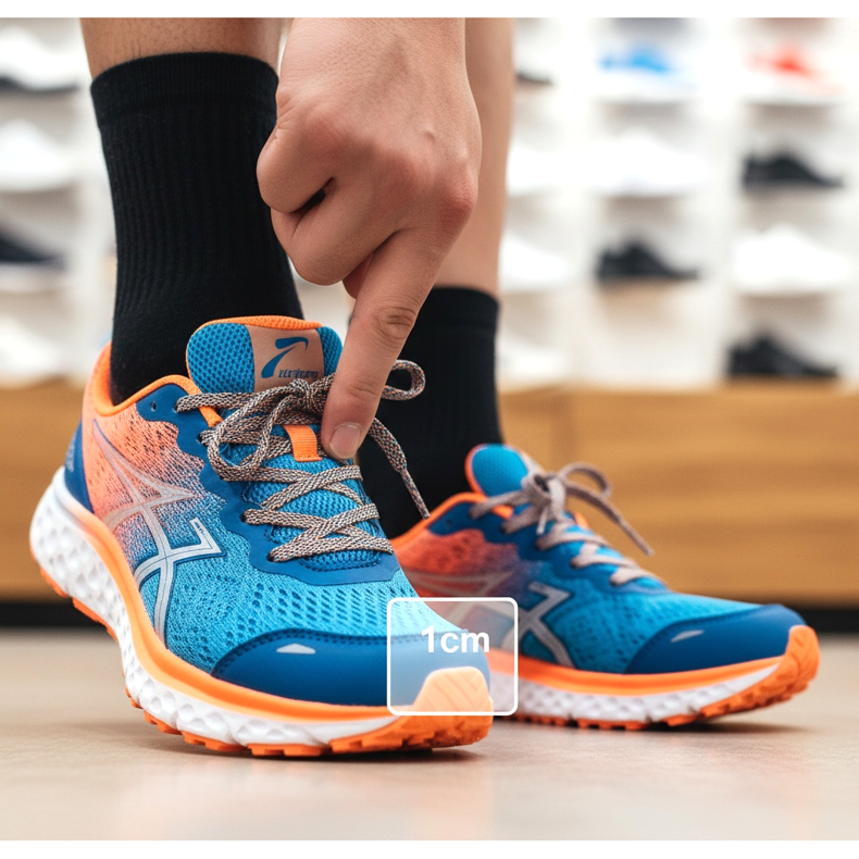 Many sports injuries result from mismatched shoe sizes. Shoes that are too tight can cause blisters and ingrown toenails, while shoes that are too loose can cause blisters and instability. The general rule is: there should be a space the width of one finger (about 1 cm) between the tip of the shoe and your long toe. Shoes should be well cared for after a lot of wear - buy them at the end of the day when your feet are slightly swollen. Remember that shoe sizes may vary between brands, so always try them on before purchasing.