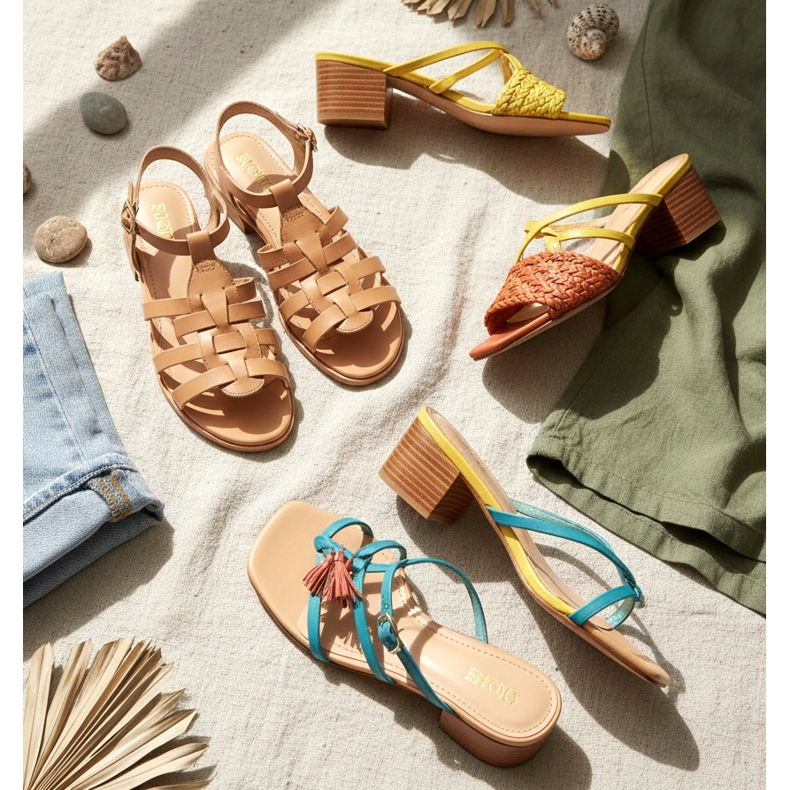 The colors of sandals and mules for spring 2026 are a palette inspired by nature. Shades of sand, terracotta, olive green and sea blue dominate. For the braver ones, designers offer vivid accents in the form of lemon yellow or intense coral.