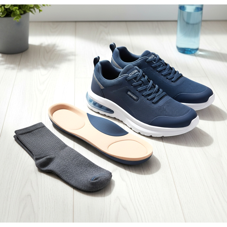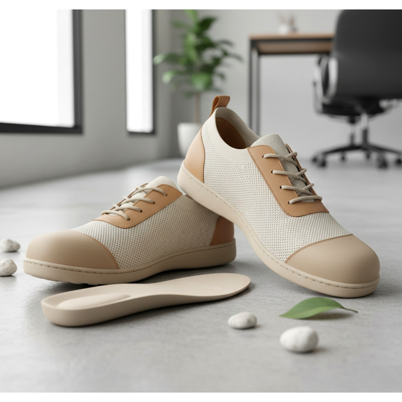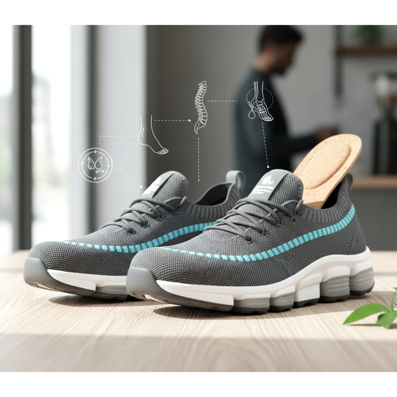 First of all: depreciation. Shoes must have a thick, flexible sole that absorbs shock when walking and standing on hard surfaces (e.g. tiles). Flat sneakers with a thin sole are the worst choice. Look for models with EVA foam or air systems in the sole. A small wedge or heel rise (approx. 2-3 cm) is healthier than a completely flat shoe because it relieves the Achilles tendon.