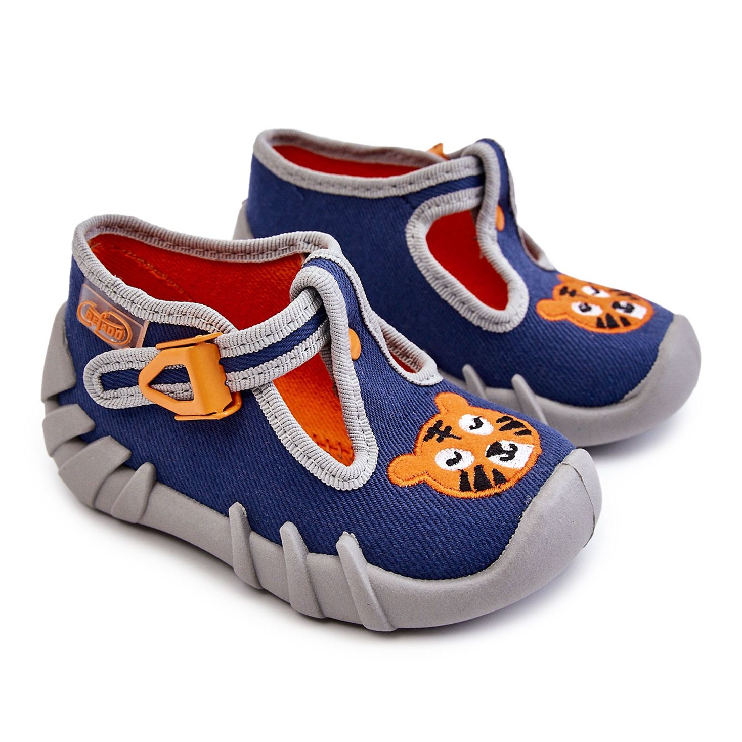 Charming, comfortable and safe - Befado Tiger slippers are the perfect choice for busy toddlers. Soft fabric, fastened with the velcro, keeps the foot perfectly, ensuring a stable step and more reliable movement. A wide tip gives a lot of space to fingers, and a breathable, flexible sole cares for comfort every day. Model recommended by orthopedists.