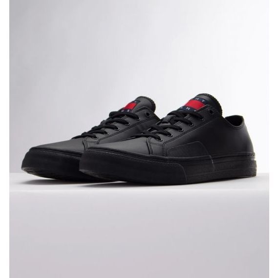We present the Tommy Hilfiger Lace Vulc Ess M EM0EM01047 shoes in black, which are an excellent choice for men who value style and comfort every day. These low-top sneakers fastened with laces combine modern design with high quality workmanship, which is a hallmark of the Tommy Hilfiger brand.