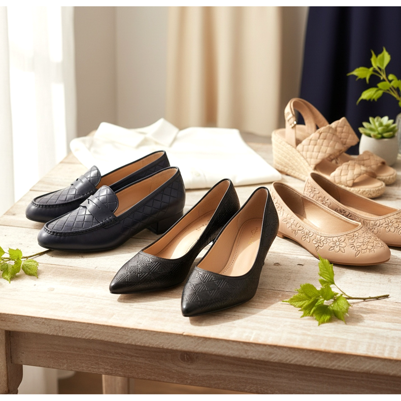 In spring 2026, shoes made of embossed leather with geometric patterns are particularly fashionable: checks, diamonds, circles or Art Deco motifs. This type of texture has a certain seriousness and elegance - it is perfect for business shoes, loafers and pumps.