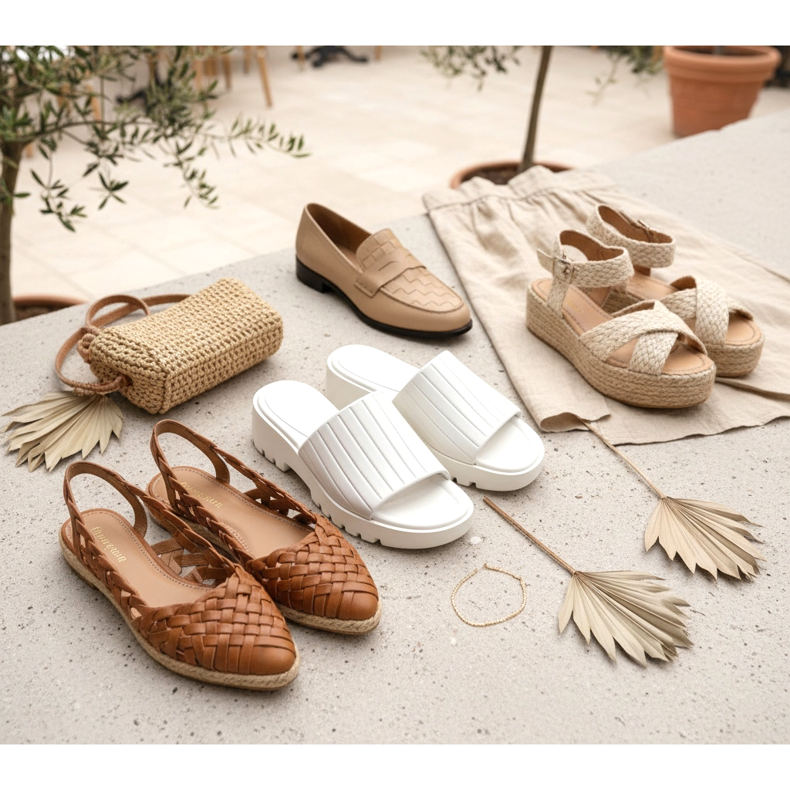 Braided shoes, on the other hand, have a longer history in fashion - just mention the iconic Italian sandals from the 1970s. In the spring-summer season of 2026, they are back in elegant, urban versions: ballet flats made of back-woven leather straps, sandals with a basket of jute fabric or loafers with an embossed basketweave pattern. Combined with linen skirts or dresses, they create an effect typical of holiday chic.