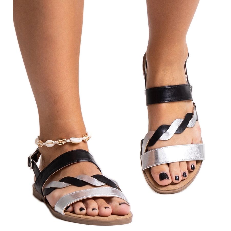 - Model: TF5012 Silver and black sandals