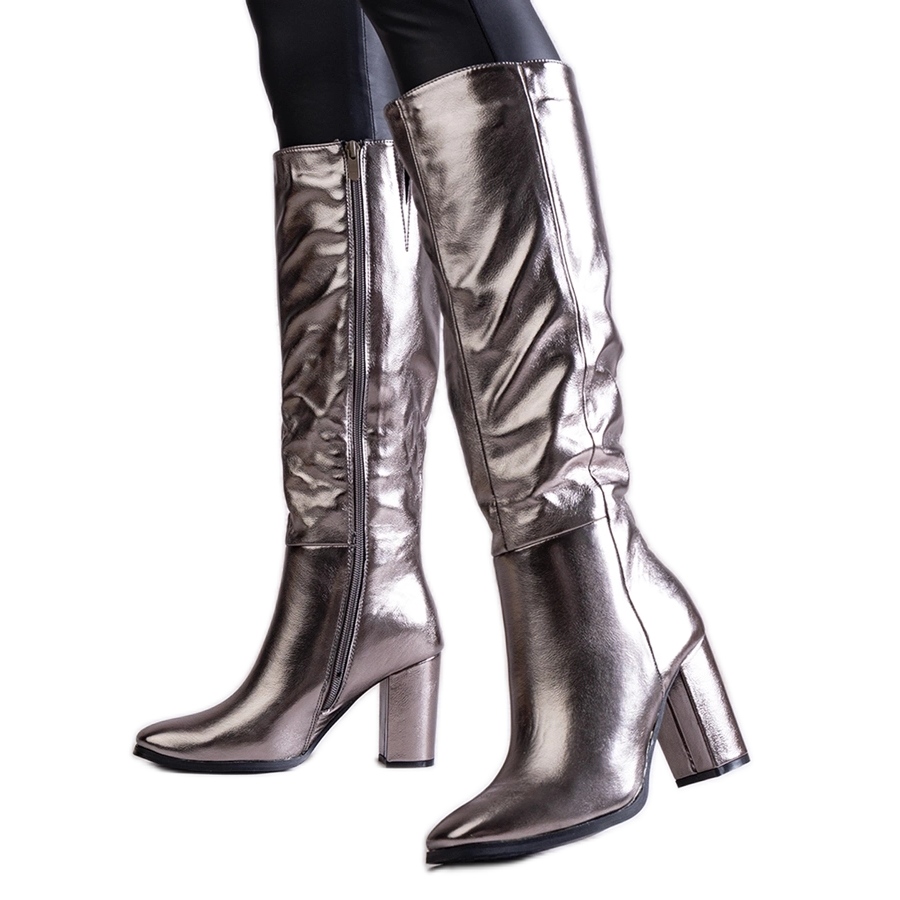 Inna marka Silver boots with a block heel made of eco-leather Toume