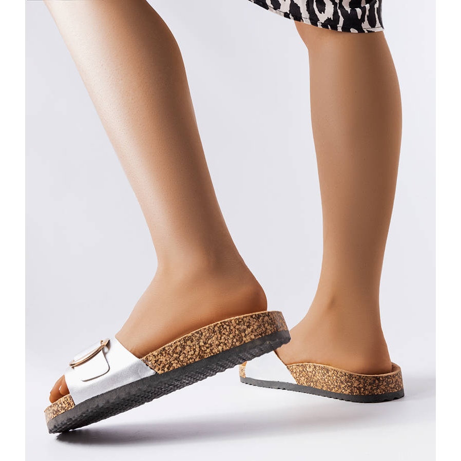 Silver Benoit flip-flops with a buckle are the perfect choice for the upcoming summer! These stylish platform flip-flops will perfectly fit into everyday stylings, adding elegance and a unique character. The upper made of high-quality ecological leather, decorated with an effective zirconium buckle, attracts attention and makes you feel special.