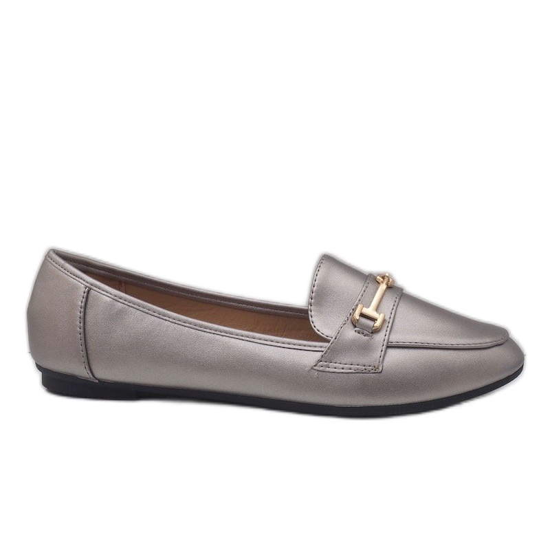 Inna marka Silver eco-leather ballerina loafers 9F176 grey
