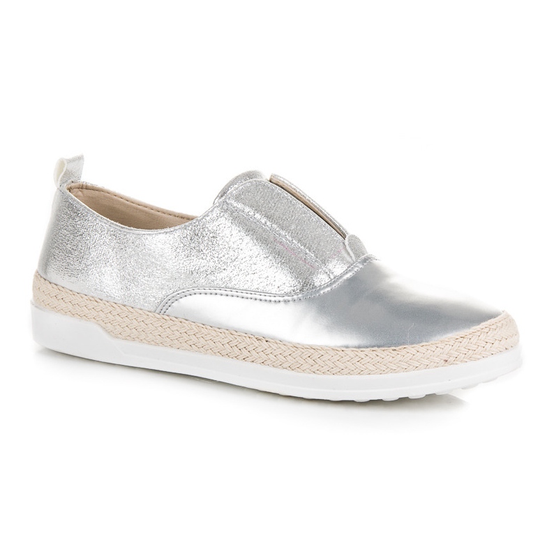 Silver Espadrilles Grey Sneakers are incredibly stylish women's footwear that will definitely attract attention. Made of high-quality leather-like material, these trendy espadrilles offer a unique metallic shine, making them a perfect fit for fashion and casual everyday styling.
