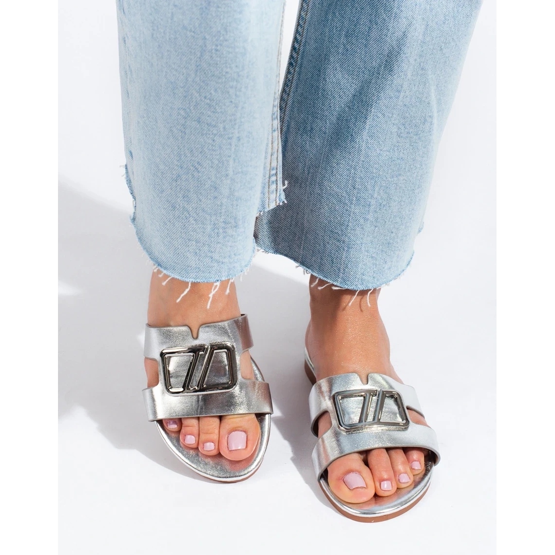 Details: Silver flat sandals with decoration Shelovet