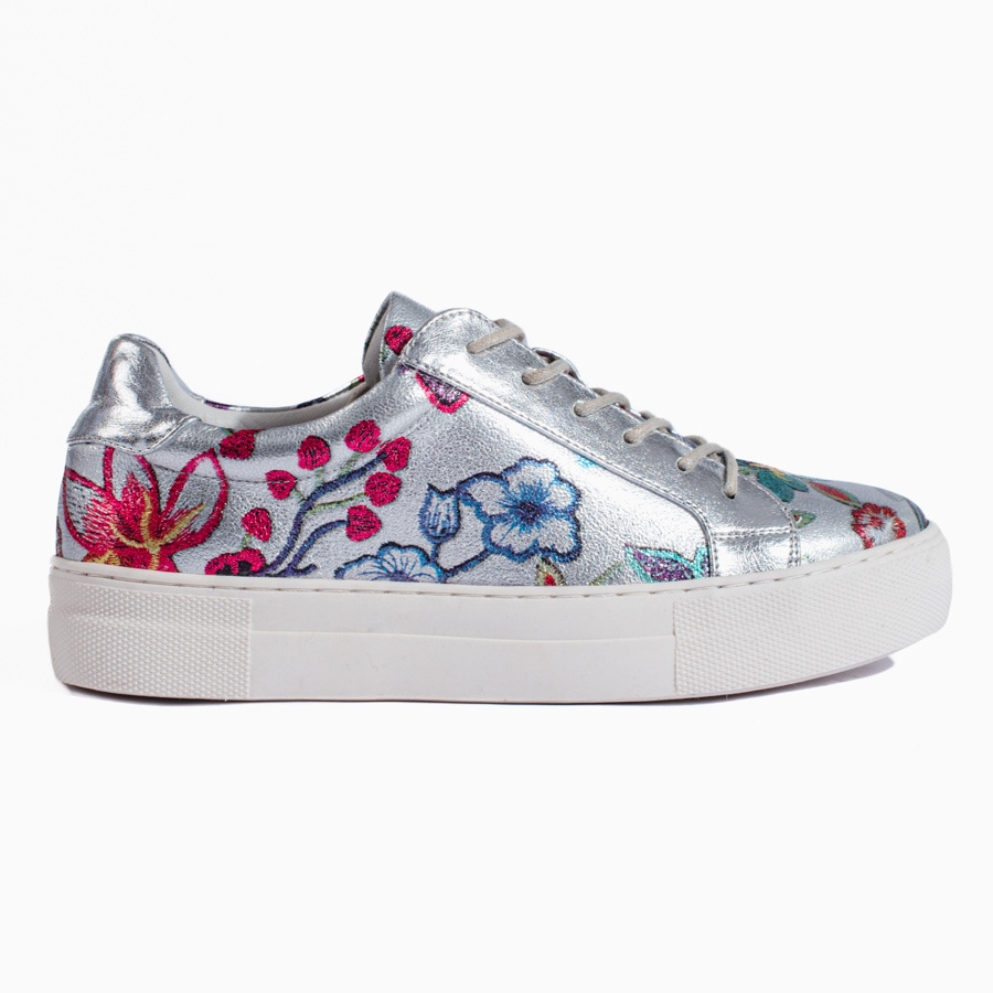 Shelovet Silver Sneakers with Flowers – Elegance in a Sporty Edition