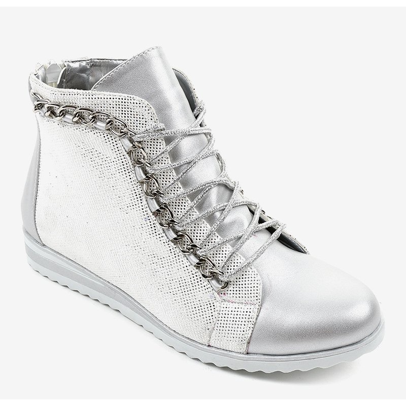 Silver lace-up ankle boots with zipper TL-21 in shade of grey are a perfect choice for modern women who value style and comfort. Made of the highest quality ecological leather, these fashionable ankle boots guarantee durability and elegant look that will perfectly fit into various styles.