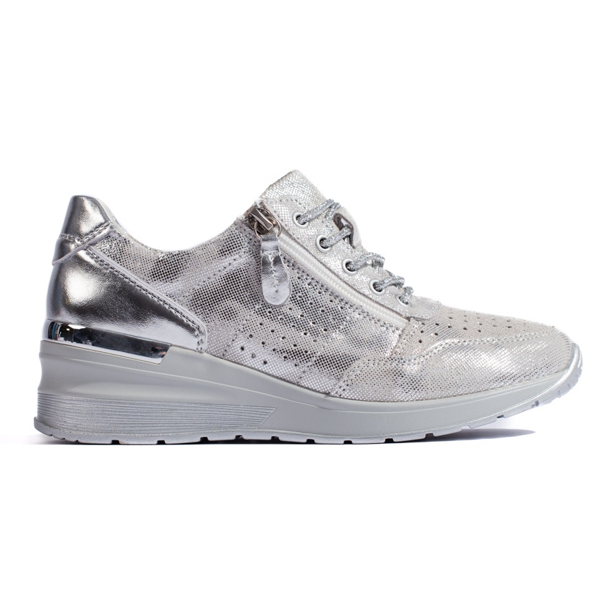 These silver wedge sneakers are the perfect choice for women who value a combination of sporty style and elegance. Perfect for everyday styling, they are great both in the city and during walks. Choose comfort and style with this unique model, which will surely become a favorite pair in your collection!