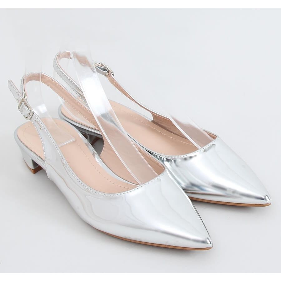 Inna marka Silver MM-801 Silver ballerinas with open heels