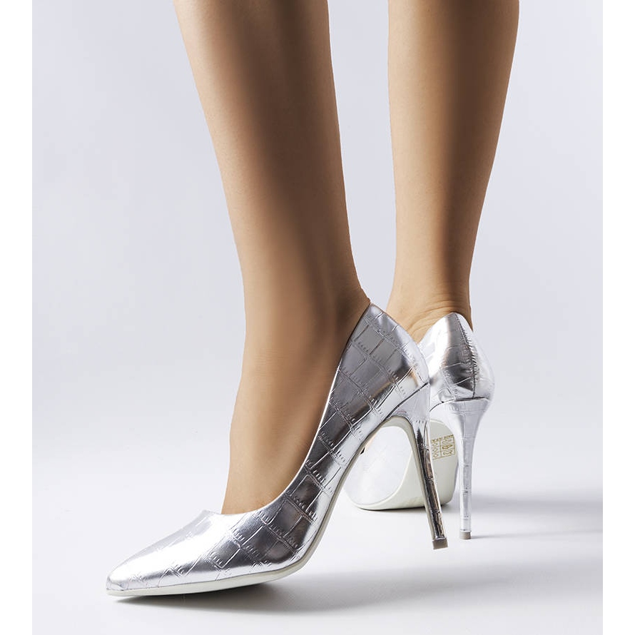 Discover elegance and femininity with the Raison pumps from PA1, which impress not only with their appearance, but also with their comfort of wearing. These silver heels decorated with crocodile skin embossing are the perfect choice for women who want to stand out from the crowd. The slim, high 10 cm heel and pointed toe make the feet look phenomenal and slim the silhouette.