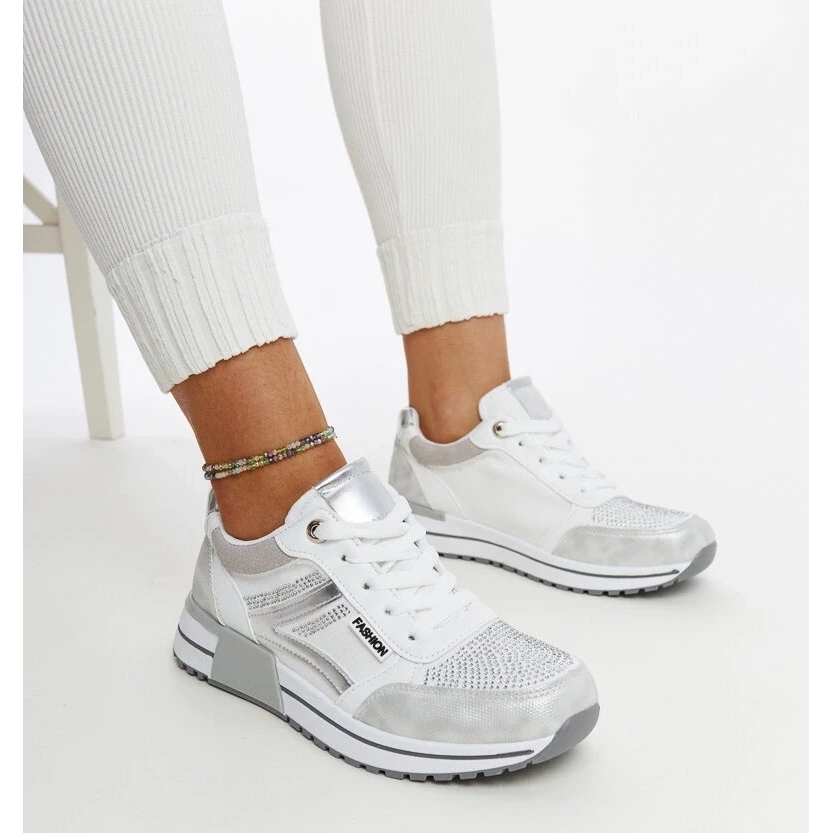 These sneakers, kept in beautiful silver color, blend in perfectly with various stylizations, from everyday outfits to the more elegant ones. Their low height and a comfortable 10.5 cm high platform make them not only stylish, but also practical.