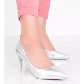 Silver Venicia stiletto pumps are the perfect choice for women who want to add elegance to their party stylings. These unique shoes are made of high-quality eco-leather in a stunning silver metallic color that will brighten up any outfit. The delicate structure of the material makes the pumps look very impressive.