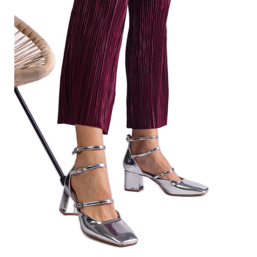 Discover an unusual glow with silver pumps varnished on a post, which constitute a perfect complement to any stylization. The G10059 model in a beautiful shade of Silver is made of high quality ecological leather, which guarantees not only an effective appearance, but also the comfort of wearing. Thanks to the metallic finish, these elegant shoes catch the eye and add a unique character to both everyday and more formal outfits.