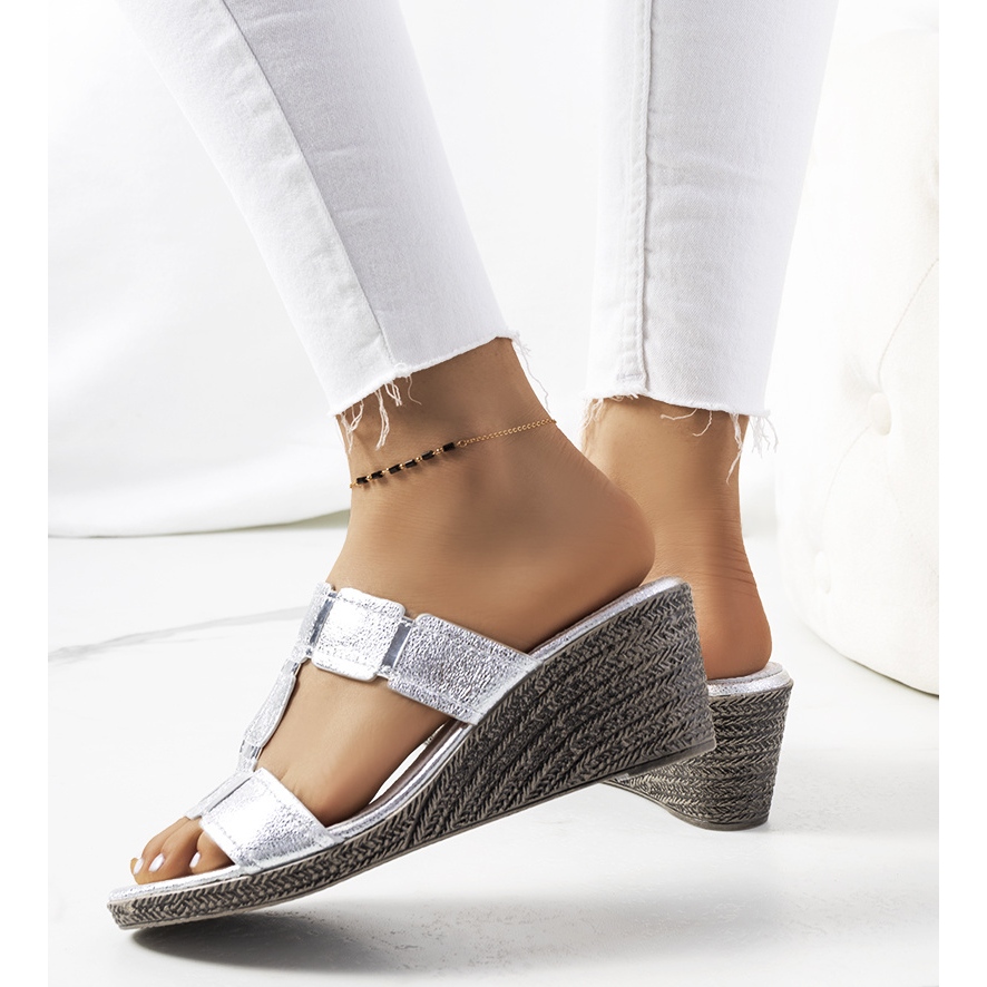 Discover elegance and comfort that come together in the silver Rosser wedge sandals. These unique shoes are perfect for women who value casual style without giving up on fashionable accents. Made of high-quality eco-leather, making them both light and stylish, they are perfect for everyday wear.
