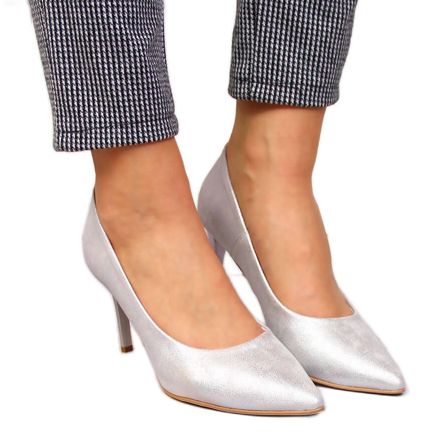 Discover elegance and comfort of wearing with shiny silver heels by Juma. These unique pumps are not only a fashionable complement to any styling, but also a perfect solution for women who value comfort. Made of high-quality ecological leather, thanks to the innovative insert made of natural leather, they provide invaluable softness and comfort even on the longest days.