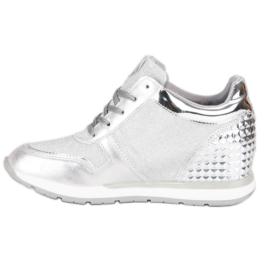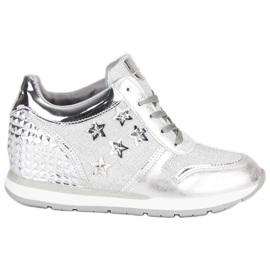 Silver sneakers in a shade of grey are an extremely stylish proposition that will certainly appeal to every fashionable woman. Made of patent eco-leather, they combine modern design with attention to comfort.