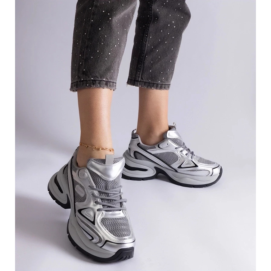 Silver sneakers on the massive sole of Adom from a reputable manufacturer D/CEO is the perfect choice for modern women who value style and comfort. These unique sports shoes combine fashionable design with practical solutions, which makes them a great complement to every stylization.