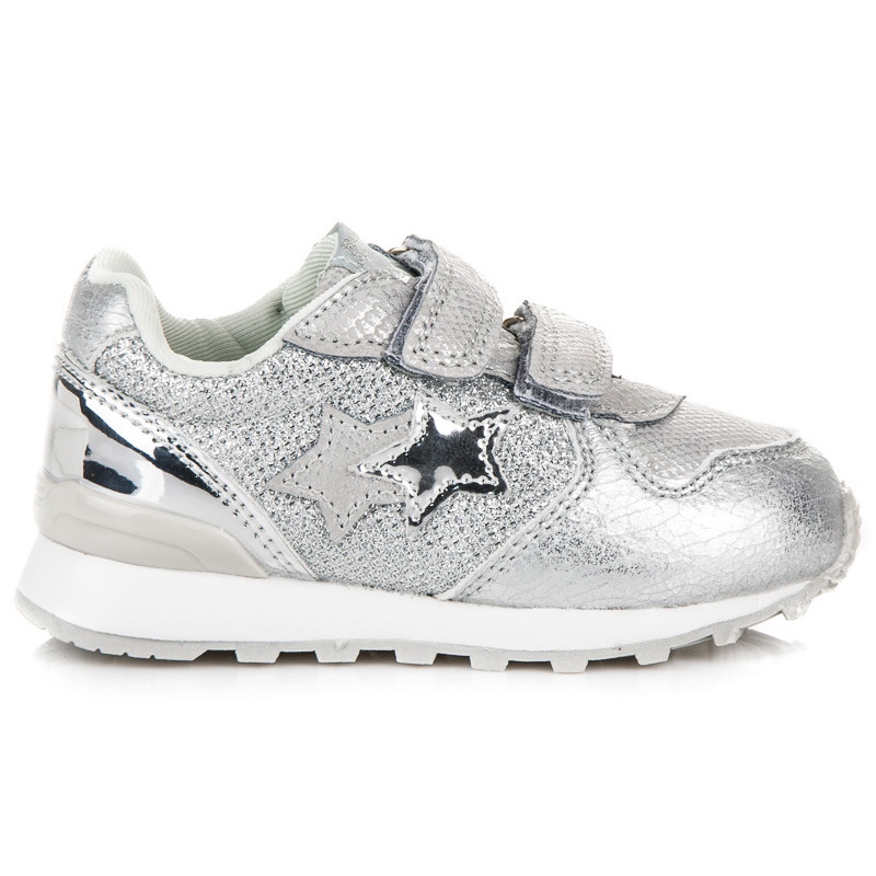 Stylish, sporty American Club sneakers in silver-gray color - perfect for everyday school and play. They are distinguished by a two-star pattern on the side, a perforated, breathable upper and a convenient Velcro fastening, which makes it easy to put on quickly.