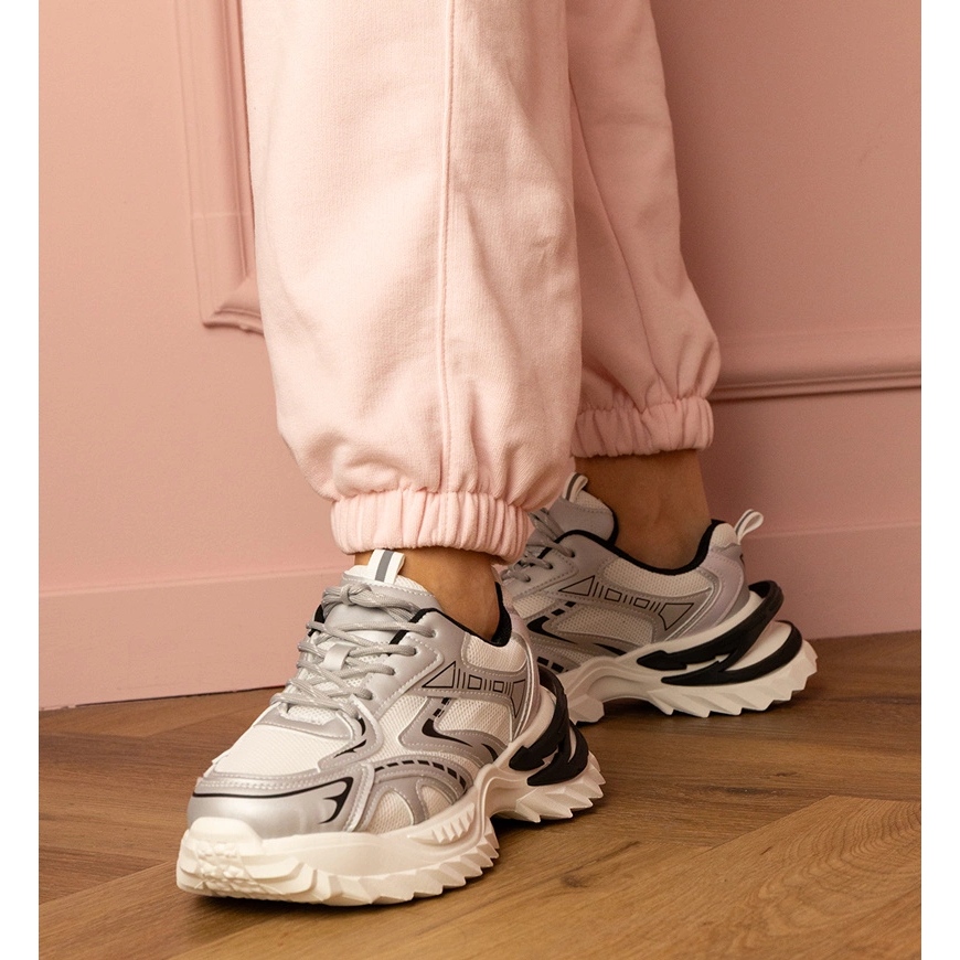 Discover the new dimension of style and comfort with silver sports sneakers on a thick sole model YY-120. These extremely fashionable women's shoes combine modern design with functionality, making them the perfect choice for both everyday stylizations and sports activities.