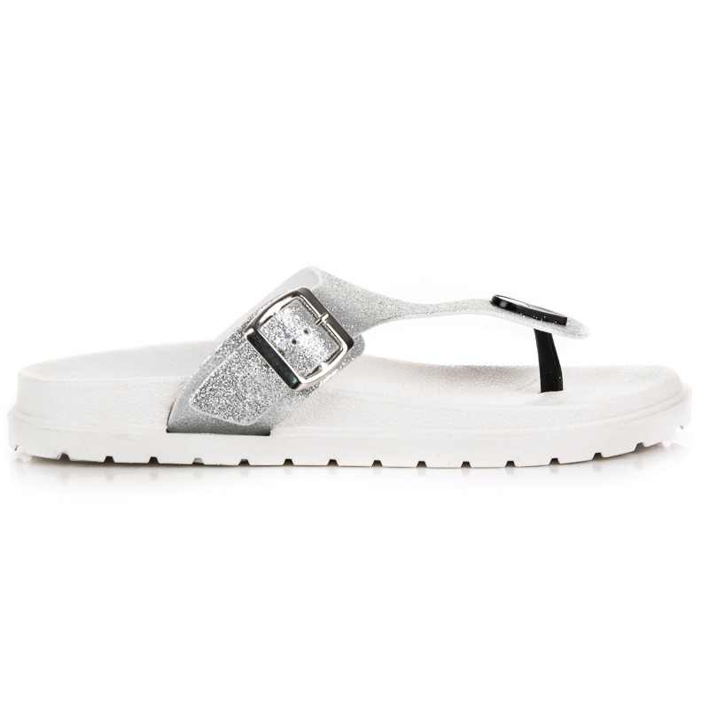 The silver accent makes the flip-flops look great with both summer dresses and shorts, creating unique styles for every occasion. The lack of a toe makes them incredibly airy, perfect for warm days.