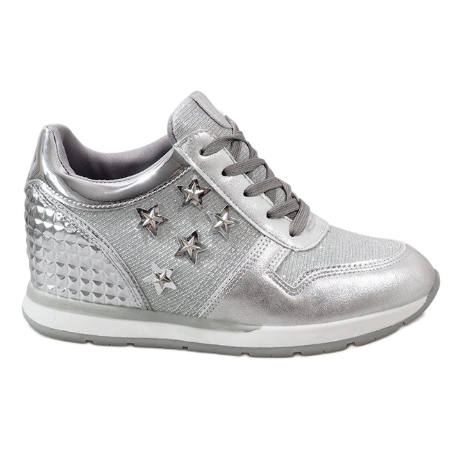Details: Silver wedge sneakers with stars BM1915-3