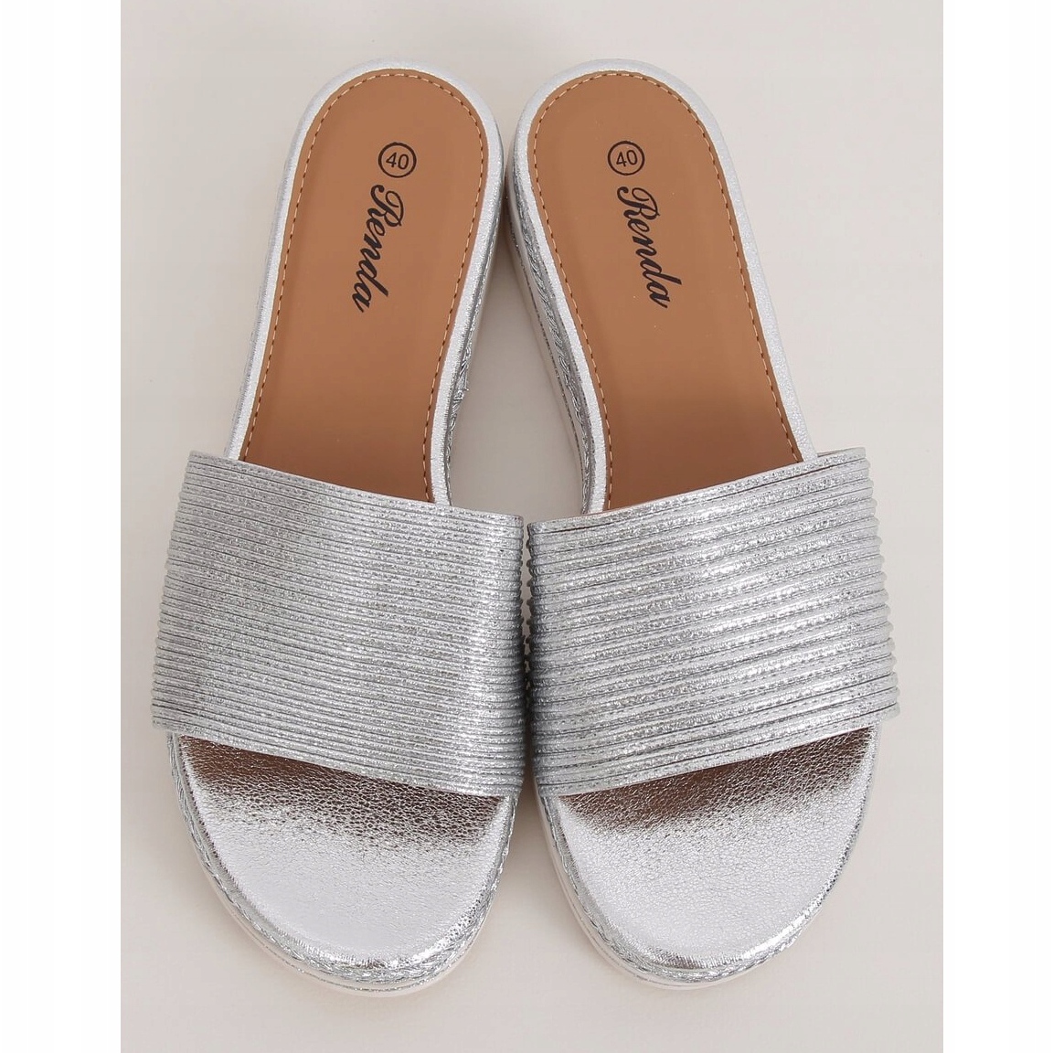 Women's silver flip-flops 222-32 Silver are the perfect choice for women who want to combine comfort with a fashionable everyday style. These elegant flip-flops with a low 3.5 cm wedge are distinguished not only by their comfort of wearing, but also by their effective design. The glitter insert and metallic finish attract attention, perfectly emphasizing a summer tan and adding shine to any styling.