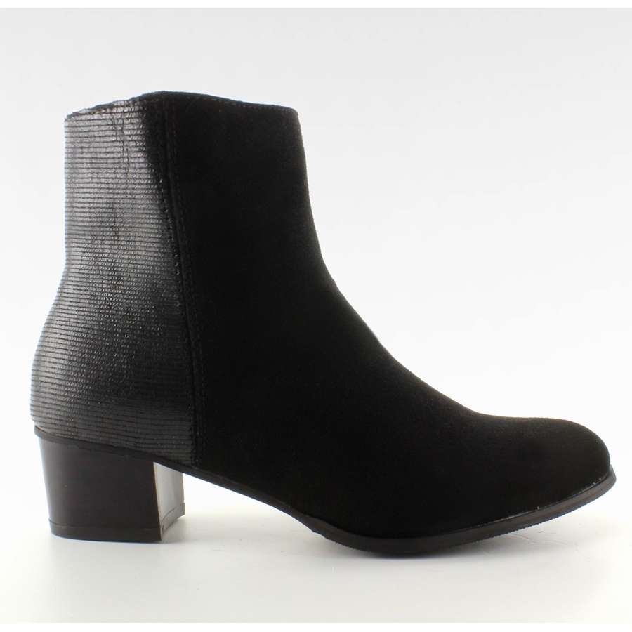 Sleek women's boots with an eye-catching combination of ecological suede and a delicately shiny back part of the upper. The model with a stable, wide post (4.5 cm) ensures wearing comfort all day long, and the zipper on the inside makes it easy to put on quickly. The interior is fully lined with soft fur - perfect for colder days.