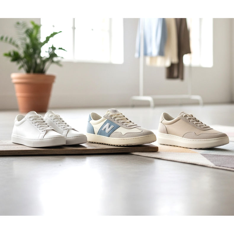 The second type is retro slim sneakers: low-profile models referring to the 70s and 80s with one subtle stripe or a minimalist logo. This style will work well both in everyday, casual outfits and in combination with more elegant wardrobe items. Versions in pastel colors - cream, gray, beige - are especially popular in spring and summer 2026.