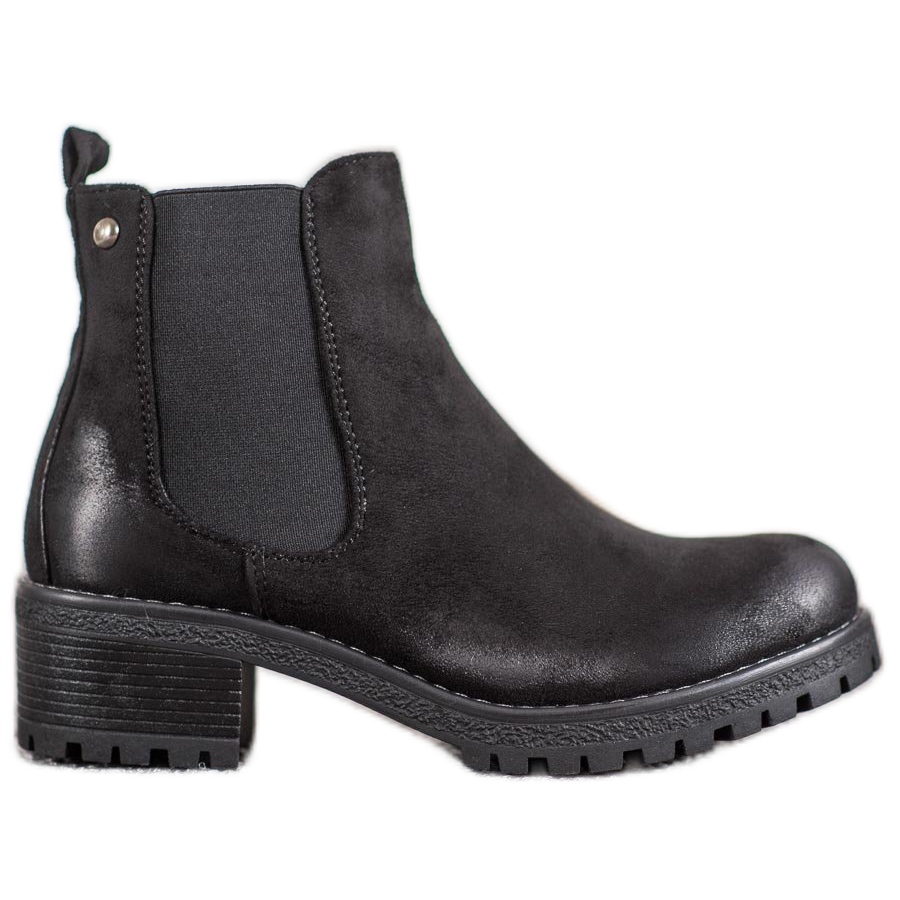The upper, reaching above the ankle, has been carefully crafted from ecological suede, which adds a modern character. Elastic rubber inserts make it easy to put on and adjust to the foot, which will certainly be appreciated by every woman who values practicality. A round toe and a built-in, stiffened heel counter complete the whole, providing adequate support.